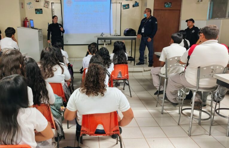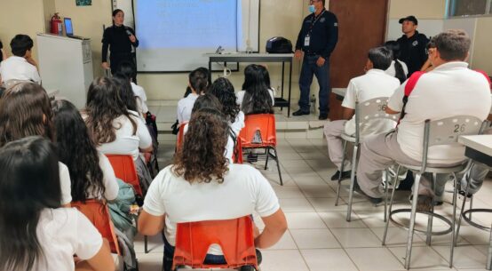 IMPARTE PROGRAMAS PREVENTIVOS PLÁTICA SOBRE CONDUCCIÓN DE MOTOCICLETA Y RIESGOS EN LA SALUD POR EL USO DE VAPEADORES A ESTUDIANTES DEL COBACH QUETCHEHUECA Con el objetivo