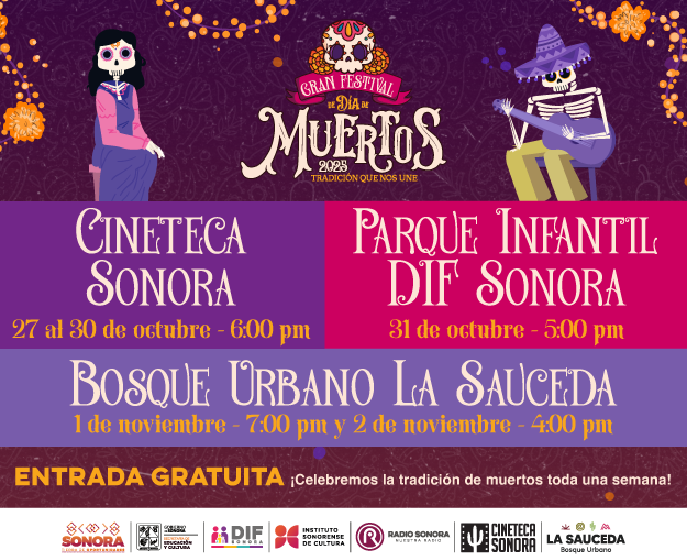 El Gobierno Municipal de Cajeme, a través del Instituto Municipal de Cultura (IMCCA), invita a las familias cajemenses a participar en el Festival de las Calacas 2025, una celebración llena de color, arte y tradición que se realizará este jueves 30 de octubre, iniciando con un desfile a partir de las 16:30 horas y posteriormente, con el festival en la Laguna del Náinari, en el marco del Día de Muertos.