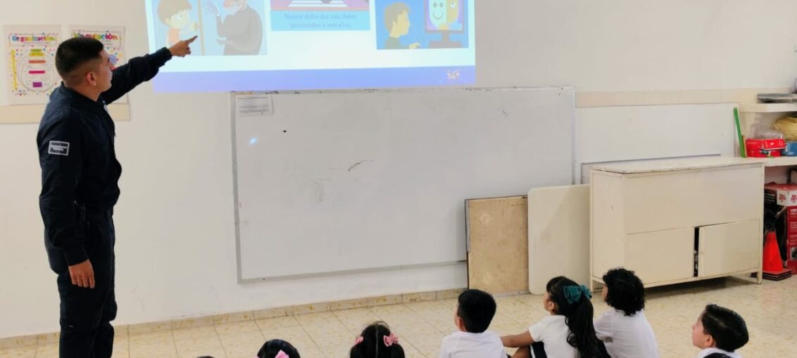 Con el objetivo de fortalecer la cultura de la prevención desde edades tempranas, la Secretaría de Seguridad Pública Municipal a través de Programas en Prevención del Delito, llevó a cabo una plática dirigida a niñas y niños del Jardín de Niños Juan Escutia, ubicado en la colonia Campestre, donde se abordaron diversos factores de riesgo y cómo evitarlos.