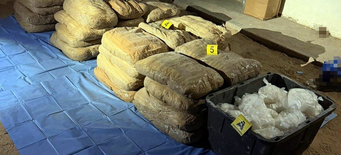 San Luis Río Colorado, Sonora; 8 de noviembre de 2025.- El aseguramiento de cerca de media tonelada de metanfetamina fue el resultado de una acción de cateo realizada en operativos coordinados en un domicilio en San Luis Río Colorado, entre las instituciones que integran la Mesa Estatal de Seguridad.